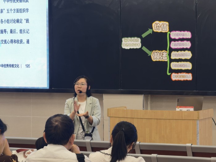 在讲座交流环节后,贵州师大贵安新区附属初级中学道德与法治教研组张桐老师以《做中华传统美德的践行者》为课题,围绕“探南仁东美德之光,铸牢中华传统之魂”“承南仁东精神之炬,践青春年少担当之行”两个子议题开展示范课教学。本节课紧密对接新时代育人目标,兼具理论深度与实践指导性,为提升道德与法治课程教学实效提供了新思路、新方法,展现了贵州师大贵安新区附属初级中学教师扎实的教学功底与创新的教学设计能力。