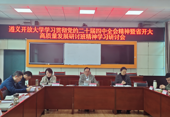 近日,遵义开放大学召开贯彻落实“贵州开放大学学习贯彻党的二十届四中全会精神暨2026年春季学期开放教育高质量发展研讨培训班”精神学习研讨会。会议由学校党委书记高翔主持,全体教职工参加会议。