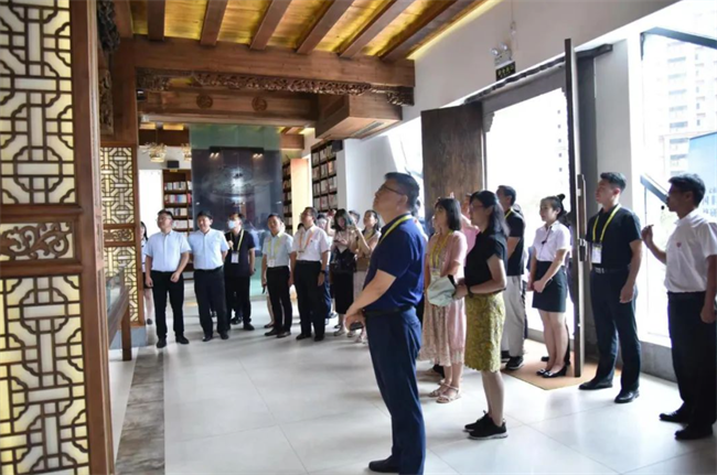 活动周嘉宾首先来到学院学义书院实地参观交流,感叹学院蕴藏丰富文化内涵,书院既是学生学习实践的基地,又是校企合作、产教融合的成果和产物,黔香阁董事长李建忠先生把黔菜推向全国,为感谢学院与公司20多年校企合作及取得的成效,将在上海世博会展出的3栋古建筑中的“九译堂”赠送给学院。“九译堂”是禁烟民族英雄林则徐二女婿“中国海军之父”沈葆桢的故居,始建于同治十年(公元1871年),是典型的徽派浙式风格,结构严谨、雕工精美、保存完好,2010年曾被选为上海世博会“运河城曲”展馆主题展品,李建忠先生将其赠送学院后,取名“学义书院”作为学院教学实训基地。