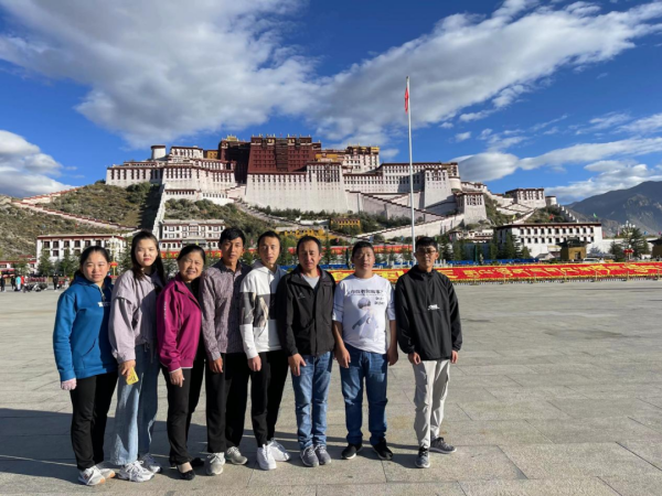饶舞林老师(左三)与盲人学生在布达拉宫广场
