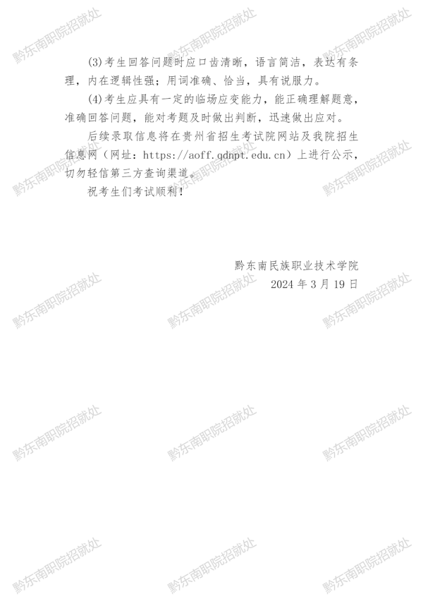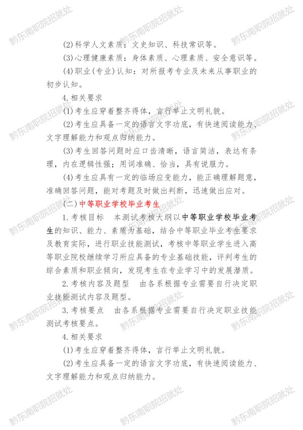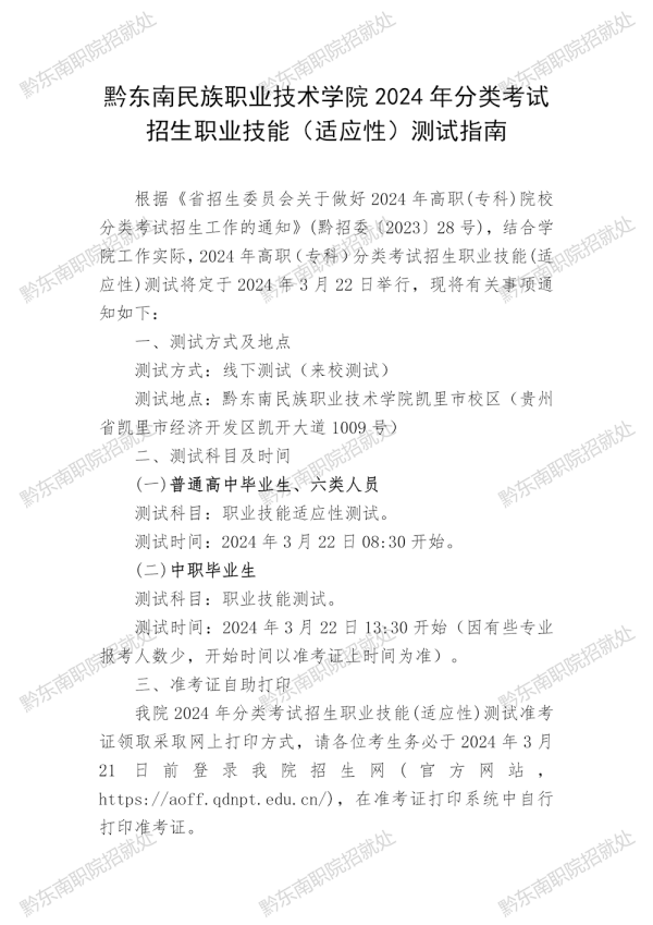 黔东南民族职业技术学院2024年分类考试招生职业技能(适应性)测试指南