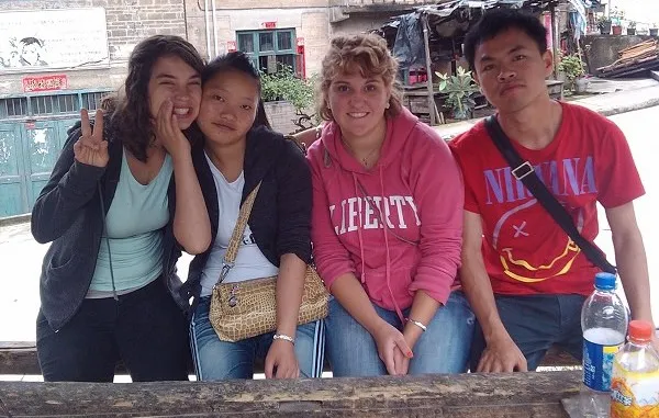 金朝政(右一)与学校外教合影