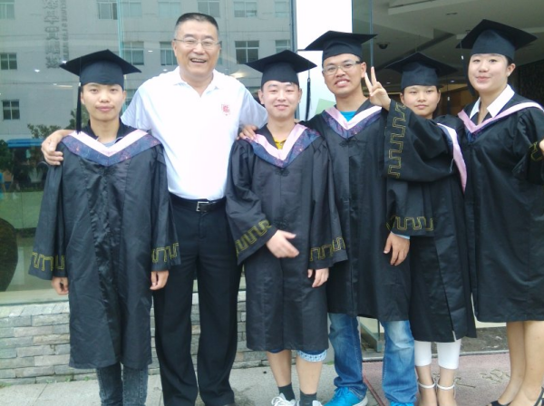 执行校长孙伟与金朝政(右三)等毕业生合影