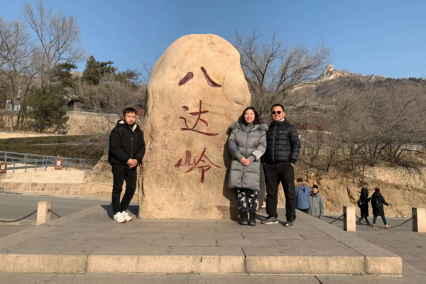 金朝政(右一)与学校教师在八达岭长城合影