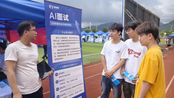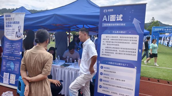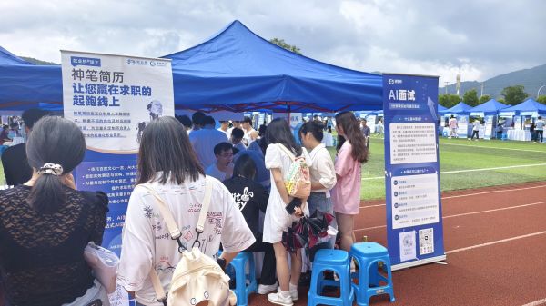 此外,会场上还特别设立了就业咨询服务区,提供“智能简历”和“AI面试”等创新就业指导服务。通过人工智能技术,为同学们的简历进行个性化改写,并对同学们进行面试技巧指导,帮助他们更有效地展示个人能力,提高就业竞争力。