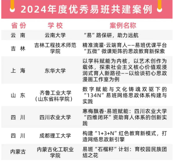近日,教育部易班发展中心公布了2024年度全国易班共建优秀案例评选结果,铜仁职业技术学院申报的案例《创新体制机制 优化评价体系 着力打造易班星级工作站》成功入选“全国优秀易班共建案例”。此次评选全国仅92项案例获此殊荣,标志着铜仁职业技术学院网络思政工作取得突破性进展。