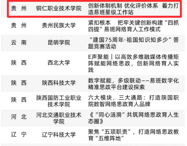 铜仁职业技术学院荣获2024年度全国优秀易班共建案例并获教育部表彰