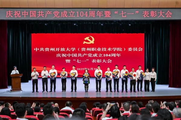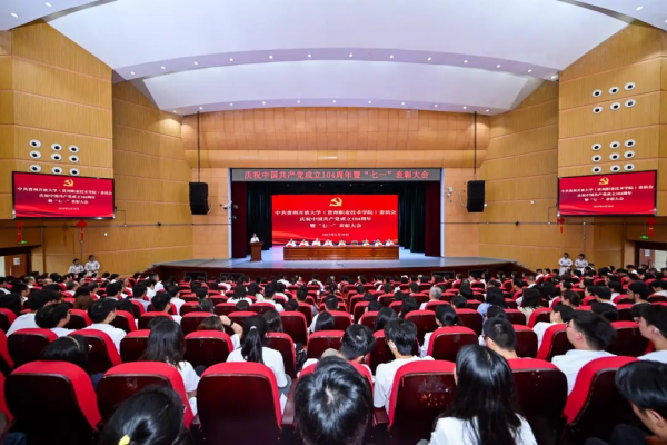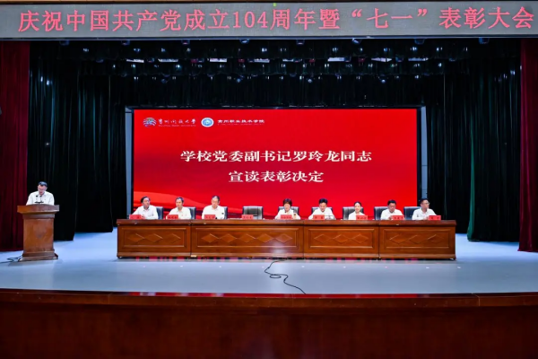 为推动深入贯彻中央八项规定精神学习教育走深走实,激励各级党组织和全体党员坚定信念、凝心聚力,2025年6月30日,我校在大礼堂举行了庆祝中国共产党成立104周年暨“七一”表彰大会。学校党委书记令狐彩桃、党委副书记、校长罗勇、全体在家校领导、从江县相关领导、学校副处级以上干部、全体教师党员、离退休教职工代表和学生代表参加会议。会议由罗勇校长主持。
