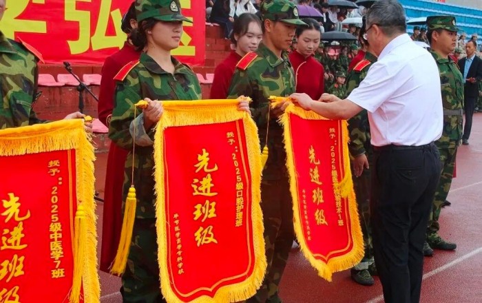 大会最后,在热烈的掌声中,叶茂向圆满完成军训任务的全体同学表示祝贺,并向辛勤付出的全体教官与带队老师致以崇高敬意。军训生活是一笔宝贵的财富,她希望同学们能将军训中锤炼出的坚强意志、严明纪律和团队精神融入今后的医学专业学习之中,秉承“精诚仁爱”的医者初心,砥砺前行,努力成长为一名优秀的医疗卫生人才。