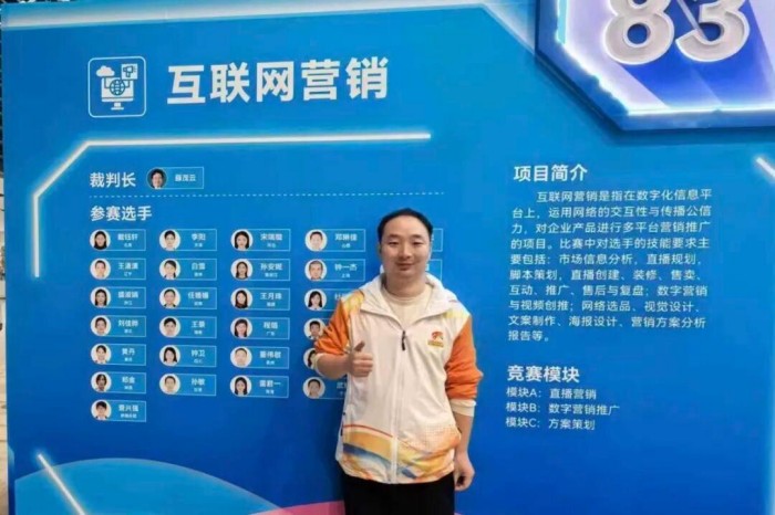 国赛精选项目面向社会从业人员和院校教师,学院教师董伟啟在彭莉老师指导下,参加“互联网营销”赛项并获优胜奖,体现了教师队伍的“双师”素质与专业实践能力。