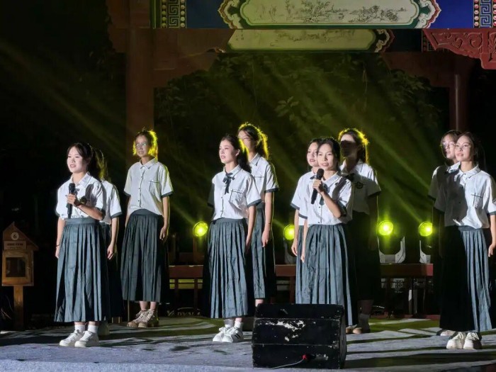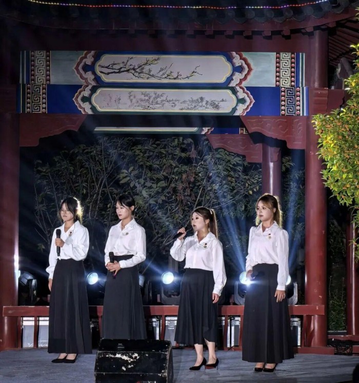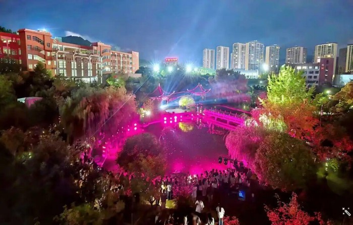 本次活动由初等教育系牵头,十个工作组协同推进。从节目编导、舞台设计到后勤保障、宣传报道等,各部门通力合作,确保活动高效有序。舞台灯光与静心湖自然景致相映成趣,传统节庆与现代舞台技术有机结合,营造出“月在诗中,诗在景中”的独特美学体验。
