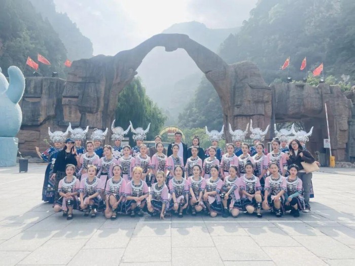 国庆期间,贵州开放大学(贵州职业技术学院)艺术与设计学院舞蹈表演专业37名学子,在吴海建、刘金慧老师带领下远赴山西省灵石县4A级景区红崖峡谷,开展了别开生面的贵州少数民族舞蹈文化交流演出及专业课程实践。