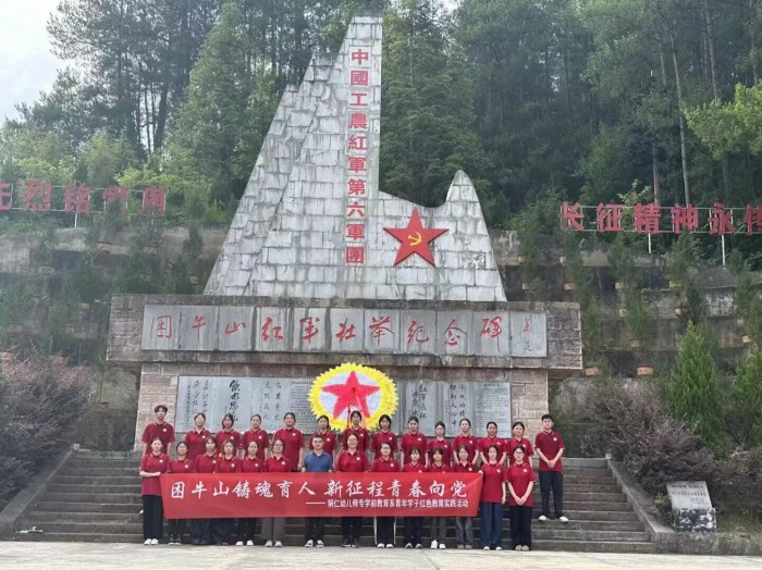 “七红七心”强生态,厚植幼师成长红色沃土。红烛育人树品牌。创新实施“七红照七心”工程(红色基因教育党员悟初心、红色担当管理党员葆忠心、红色洗礼监督党员守本心、红色引擎组织师生强信心、红色故事宣传师生润民心、红色印记凝聚师生育匠心、红色纽带服务师生暖人心),建立“价值浸润-技能淬炼-使命践行”人才培养递进机制,通过课程共建、技能比武、志愿服务等载体,推动毕业生就业对口率达86.5%。党建双融强根基。依托铜仁市第二职教集团平台,构建“政-校-园”协调机制,通过联合教研、教师轮岗及家长学院工作坊,推动优质幼教资源向城乡及农村地区辐射,累计下沉12项创新成果,实现学前教育专业服务与地方需求精准对接,形成“党建引领、三位协同”的职教集团育人新范式。红心服务暖人心。立足社会服务职能,有效发挥人才优势,先后组建以党员教师为引领的暑期三下乡志愿服务实践团,深入乡村开展普法宣传、推普助力乡村振兴、教育帮扶、健康科普、关爱幼儿及老年人等活动,服务当地群众20000余人次。(文/代晓明、柴若楠、帅朝君、张羽洪)