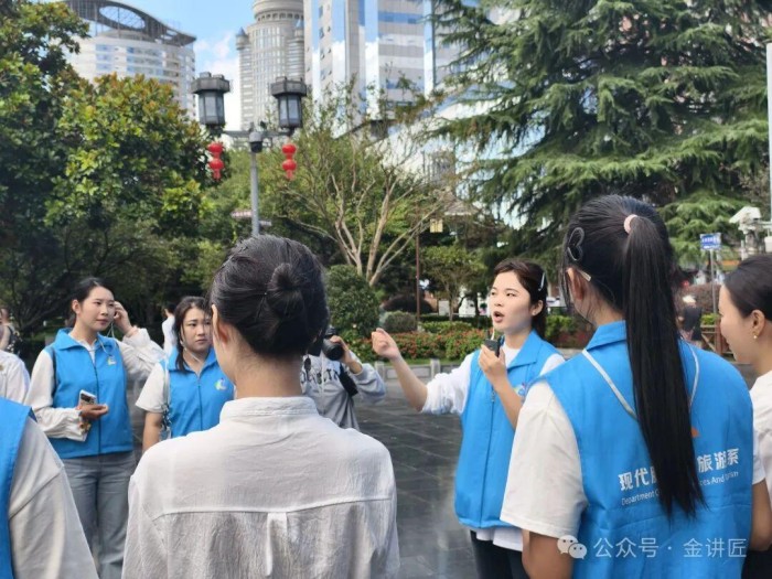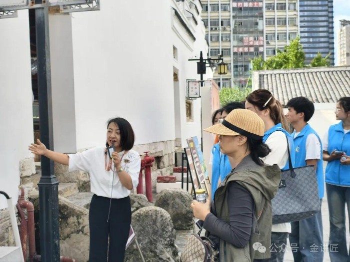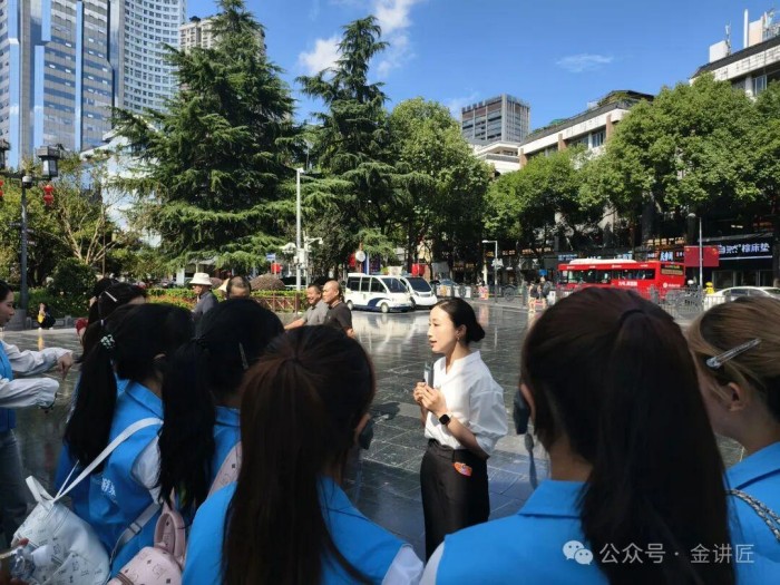 作为活动的核心环节,“城市金讲匠”公开课将课堂移至城市历史文化现场。讲师团队沿太平路、电台街、文昌阁至甲秀楼的经典路线,为“校园金讲匠”学员们全程进行了实地讲解示范。