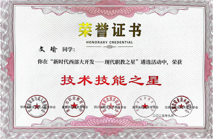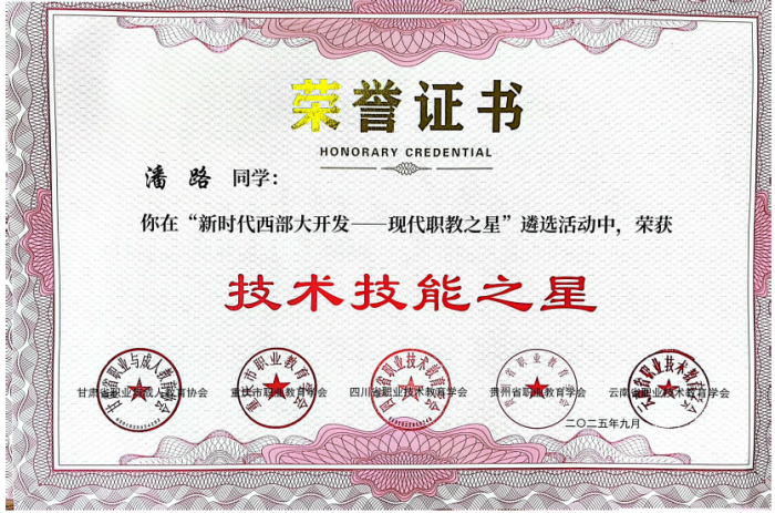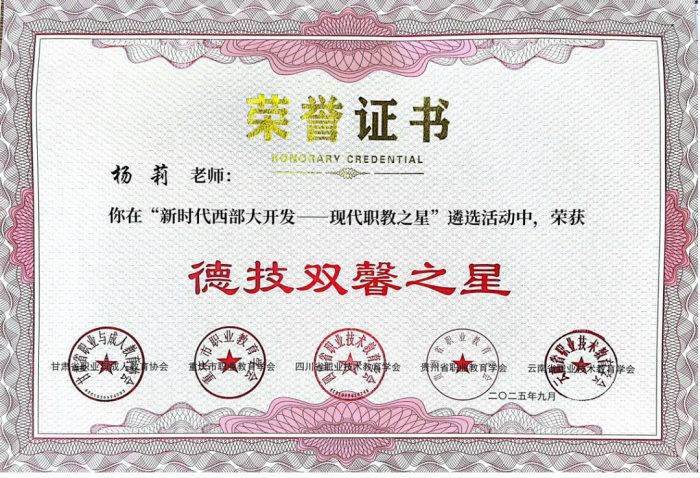 近日,由甘、渝、川、贵、云五省市职业教育学会(协会)联合开展的“新时代西部大开发——现代职教之星”和“新时代西部大开发产教融合典型案例”遴选结果正式揭晓。本次遴选活动以搭建高水平交流展示平台、推广职教改革创新经验为目标,紧扣新时代西部大开发战略对职业教育的需求,围绕服务区域经济社会发展的核心使命,在西部地区职业教育领域极具权威性。