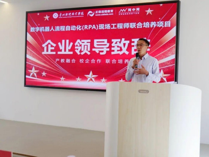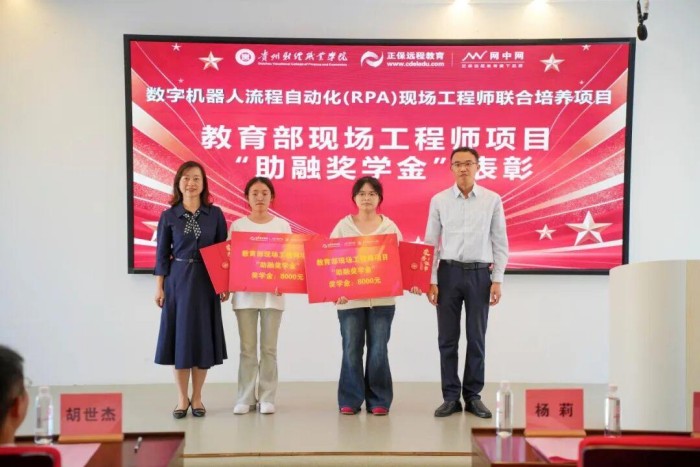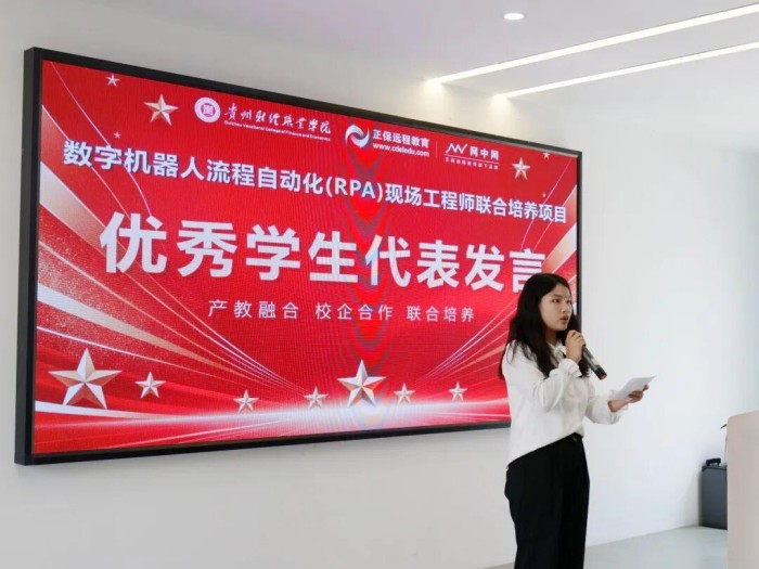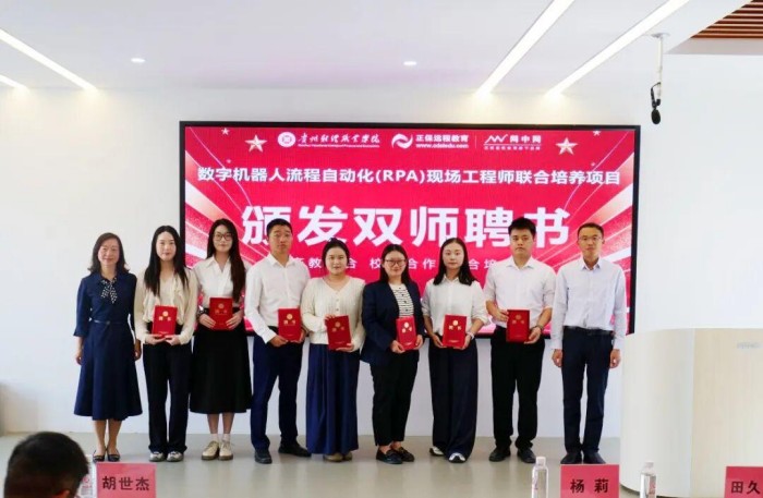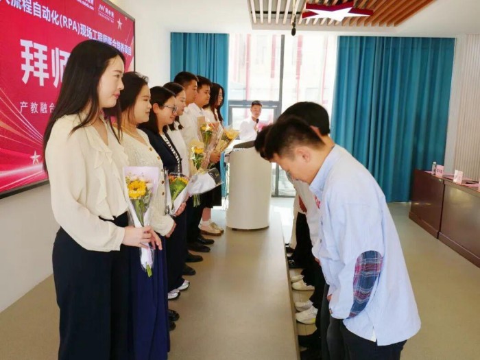 会上还进行了RPA现场工程师联合培养计划项目班双师聘书颁发、拜师、学生代表发言、表彰等仪式。