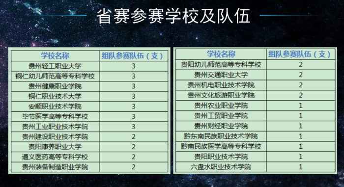 本次大赛由贵州省图书馆学会主办,铜仁幼儿师范高等专科学校图书馆与贵州工业职业技术学院图书馆联合承办,北京智信数图科技有限公司提供技术支持。自9月启动以来,全省22所院校的2235名学生踊跃报名参赛,经选拔后,132名学生晋级省赛,组建了44支参赛队伍。