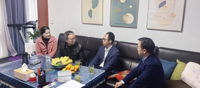 朱保贤、鲁丽等一行前往常住铜仁的退休老同志彭远斌家中慰问,关切地询问他的身体健康状况、生活起居和实际困难,向他简要介绍了学校近期在教育教学、高质量转型发展等方面取得的新进展、新成就,并认真倾听他的意见建议。