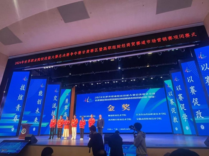 2024年世界职业院校技能大赛总决赛(高职组)财经商贸赛道市场营销项目争夺赛于10月29日至31日在兰州圆满举行。来自全国各省市、自治区、直辖市的62支参赛队伍同台竞技。由贵州财经职业学院工商管理系教师段有欢、王雪梅指导,并由工商企业管理专业学生段学宇、赵友彬、潘路以及财务会计系学生文瑜组成的参赛队伍,凭借精湛的专业技能和顽强拼搏的团队合作精神斩获金奖。这也是贵州财经职业学院首次在世界职业院校技能大赛争夺赛中夺得金奖。