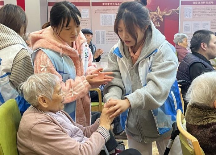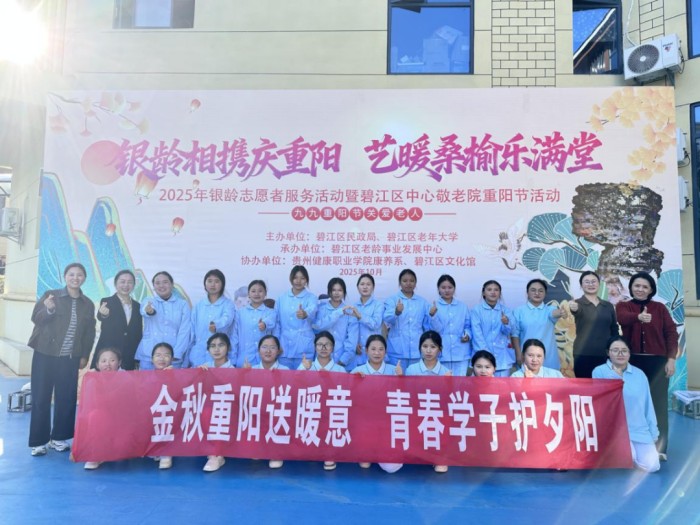 岁岁重阳,今又重阳。10月28日至29日,康养系组织师生组成多支志愿者服务团队,联合铜仁市老年大学、铜仁市碧江区敬老院、幸福里长照之家、万山区龙生社区、仁康养护院等多家单位,开展“重阳敬老 青春助老”系列志愿服务活动,以专业服务与温情陪伴,为老年群体送上节日关怀。