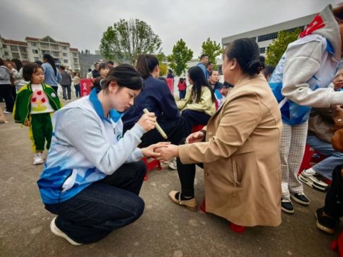 师生在龙生社区及碧江区中心敬老院为老年人进行康复理疗