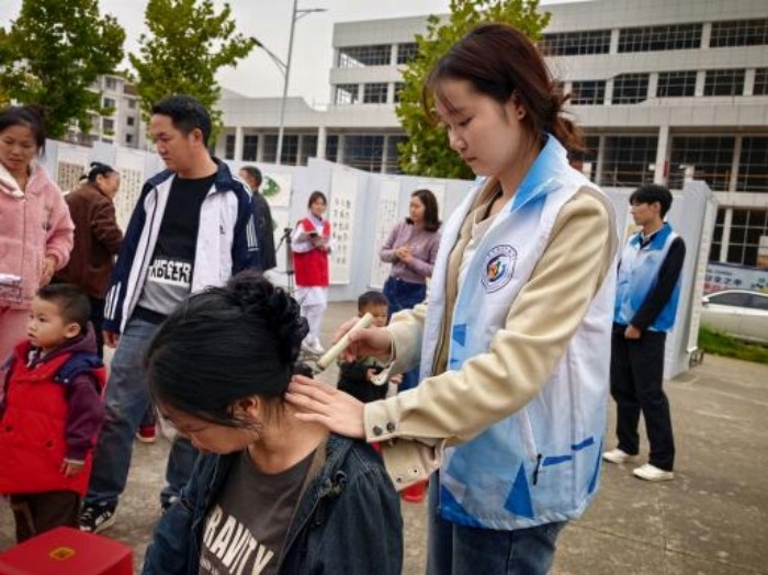 活动中,康养系师生志愿者充分发挥专业所长,为老年人提供多元化健康服务。在龙生社区与幸福里长照之家,志愿者为老人们开展艾灸、肩颈推拿等理疗服务,针对老年人常见的颈肩酸痛、疲劳等问题,运用课堂所学的推拿手法精准施术,有效缓解身体不适;在幸福里长照之家,志愿者还为长者提供健康咨询服务,耐心解答秋季保健、慢性病管理等疑问,普及日常健康知识,各活动现场均安排志愿者与老人沟通身体状况,为后续服务提供基础参考。