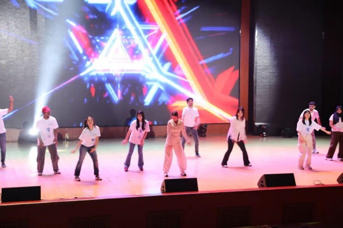 为让中外青年能够更加深入广泛交流,了解和体验中国优秀传统文化和贵州铜仁本地特色文化。国际留学生们与贵州健康职业学院、铜仁幼儿师范专科学校、铜仁职业技术大学三所高校的学生共同开展了中外青年文化交流展演活动。舞台上,国际学生们带来了舞蹈《Together》、独唱《Bokul Ful Bokul Ful》、合唱《We are the world》等精彩节目,赢得了现场1000余名师生们的满堂喝彩。