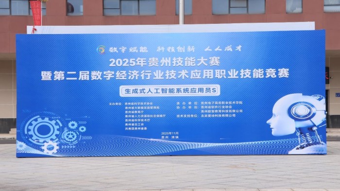 11月7日,2025年贵州技能大赛暨第二届数字经济行业技术应用职业技能竞赛“生成式人工智能系统应用员S”赛项,在贵州电子商务职业技术学院举办。以标准化流程、精细化服务保障赛事零延误、零故障。