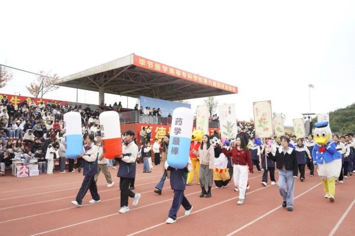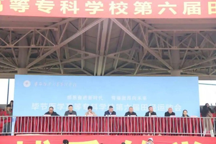 金秋送爽,彩旗飘扬。11月7日上午,毕节高等专科学校第六届学生田径运动会正式开幕。学校领导班子、各部门党政负责人及全体师生出席开幕式。毕节医学高等专科学校全体师生精神抖擞,齐聚赛场,共同见证这场活力与激情的盛会启幕。
