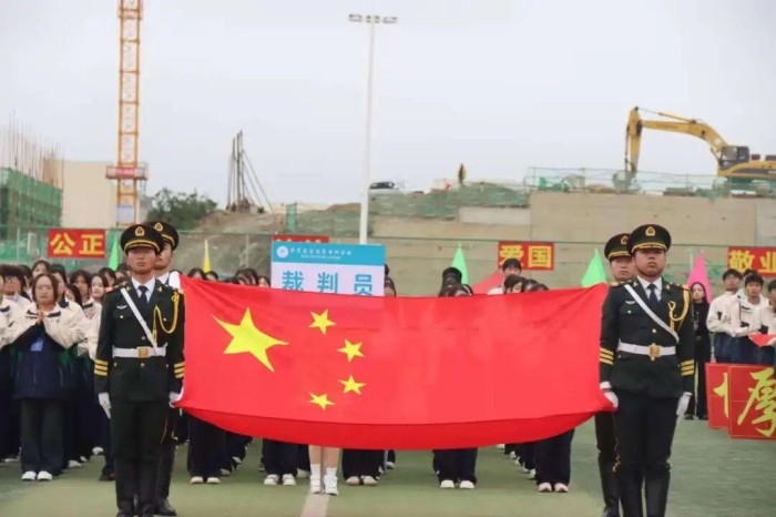入场仪式后,升国旗、奏唱国歌环节庄严举行,全体人员肃立致敬,爱国情怀在心中激荡。校党委委员、副校长彭垚为运动会致辞,勉励全体运动员秉持“友谊第一,比赛第二”的原则,以赛事为契机热爱运动、强健体魄;校党委副书记、校长杨永学高声宣布运动会开幕,现场掌声雷动,开幕式在热烈氛围中落下帷幕,一场速度与激情、团结与拼搏的运动盛宴就此启幕。