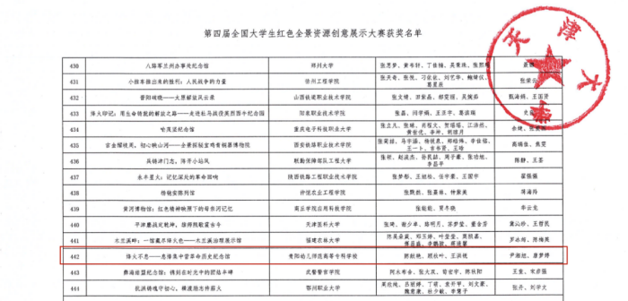 近日,第四届全国大学生红色全景资源创意展示大赛获奖名单正式公布,贵阳幼儿师范高等专科学校学子凭借扎实的专业素养、新颖的创意表达和深厚的红色情怀,在全国31个省(自治区、直辖市)330余所高校的1700余个参赛作品中脱颖而出,成功斩获二等奖,为学校赢得了荣誉。