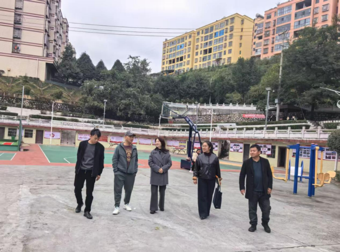 在柏果镇红卫社区,唐露萍实地察看学校帮扶项目