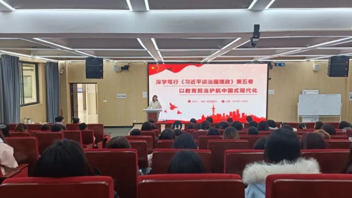 肖燕结合党的二十届四中全会精神和学院工作实际,以“深学笃行《习近平谈治国理政》第五卷以教育担当护航中国式现代化”为主题,与在场师生交流学习体会。她指出,学习贯彻《习近平谈治国理政》第五卷内容,一是要把握核心要义,深刻领会《习近平谈治国理政》第五卷的思想精髓与时代价值;二是要聚焦教育使命,找准《习近平谈治国理政》第五卷与高职教育的实践结合点;三是要强化担当作为,推动《习近平谈治国理政》第五卷学习成果落地见效。