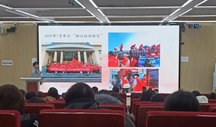 为了深入学习贯彻《习近平谈治国理政》第五卷,落实教育强国建设关键任务,深化学院内涵发展,坚持为党育人、为国育才初心使命,凝聚奋进力量,11月4日,人文艺术系在致善楼5205阶梯教室开展《习近平谈治国理政》第五卷“理论宣传二人讲”活动。本次活动采用“理论+实践”宣讲方式:由学院副院长肖燕作理论阐释宣讲,系统解读著作核心要义;系部优秀预备党员张才才同学结合自身经历分享学习实践体会,以青年视角展现理论落地成效。全系师生代表参与活动。