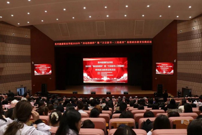 11月7日,贵州健康职业学院"身边的榜样"暨"万言家书·三思教育"思想政治教育实践活动在学院大礼堂举行。学院在家领导班子、铜仁市教育局、企业代表和师生代表等千余人观看了此次活动。