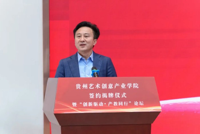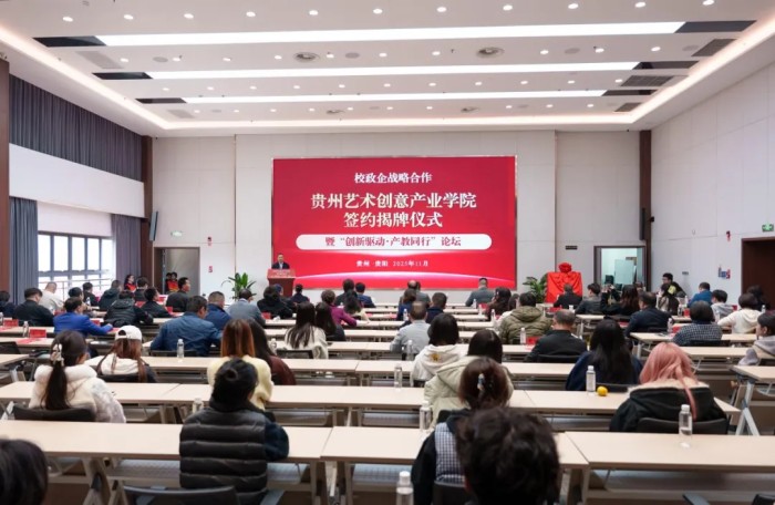 11月17日,贵州艺术创意产业学院签约揭牌仪式暨“创新驱动·产教同行”论坛在贵州民航产教融合开放实训大楼二楼举行。学校党委副书记、校长罗勇,党委副书记张仁俊、贵阳市云岩区人民政府副区长董政,广东同天科技产业发展有限公司副总经理刘世意,贵州同天科技产业发展有限公司总经理揭屯出席,省内外兄弟院校、行业企业代表及学校相关部门、二级学院(部)负责人及师生代表100余人参加。大会由学校党委常委、副校长林长松主持。