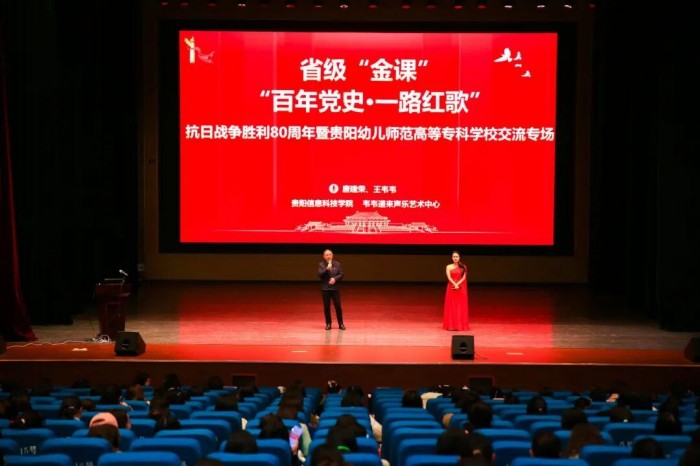 百年征程波澜壮阔,红色基因代代相传。为深入贯彻习近平新时代中国特色社会主义思想,推动党史学习教育走深走实,11月14日,省级思政金课“百年党史·一路红歌”音乐党史课在学校音乐厅举行。本次活动特邀重量级嘉宾联袂呈现——教育部直属高校特聘党建联络员、国家国防教育库专家、贵州省省管专家、贵阳信息科技学院校长唐建荣教授担任主讲,抒情花腔女高音二级演员、独立音乐人、第十九届群星奖获得者王韦韦担任演唱嘉宾。学校党委委员、副校长潘丽芬主持,600余名师生代表现场参与聆听,共同感受“史”与“歌”交融的红色力量。