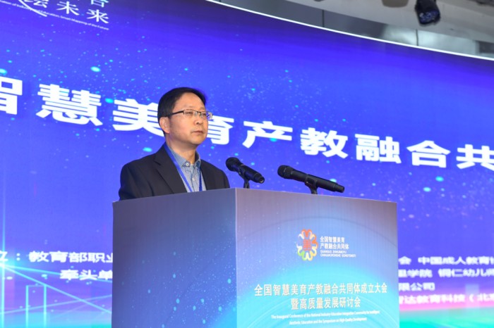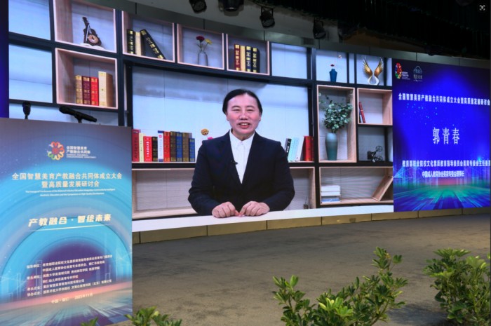 教育部职业院校文化素质教育指导委员会美育专门委员会主任委员、中国成人教育协会美育专业委员会理事长郭青春致辞