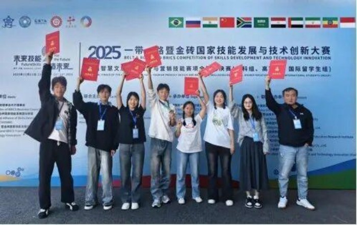 本次大赛作为经金砖国家最高领导人会晤筹备委员会认可的国际性赛事,聚焦文旅产业数字化升级需求,竞赛内容涵盖文旅产品数字化设计、智慧营销策略、大数据分析等前沿领域,全面考查选手的创新思维与实战能力。备赛期间,参赛团队在指导教师带领下,深入景区及周边村庄调研,深挖地方文化资源,将非遗元素与数字直播技术深度融合,打造出兼具创新性与实用性的参赛作品。团队成员刻苦钻研、反复打磨,最终在激烈角逐中凭借扎实的专业功底、出色的创新思维赢得评委一致好评。