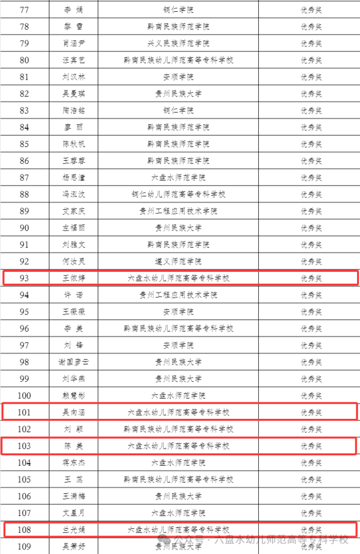 六盘水幼儿师范高等专科学校在贵州省第三届“三字一话”应用能力大赛中荣获优秀奖4名。