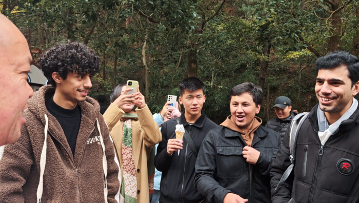 傍晚时分,师生们来到烟火升腾的青云市集,沉浸式体验贵阳当地的夜生活与美食文化。琳琅满目的特色小吃吸引大家纷纷品尝,学生们一边享用着地道菜肴,一边用中文连声称赞“好吃!”,脸上洋溢着满足的笑容。