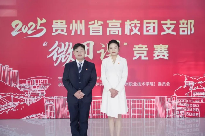 11月21日,由共青团贵州省委主办,共青团贵州开放大学(贵州职业技术学院)委员会承办的2025年贵州省高校团支部“微团课”竞赛决赛在贵州职业技术学院大礼堂举行。本次竞赛以“凝聚青年力量,奋进时代征程”为主题,旨在加强对广大青年的理想信念教育,团结引领青年学子在中国式现代化贵州实践中挺膺担当。