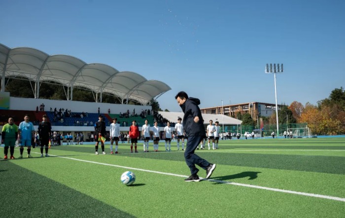 为进一步贯彻落实党中央、国务院、教育部关于校园足球的重大决策部署及全国足球工作会议和省政府足球工作专题会精神,推进校园足球健康持续高质量发展,积极探索文旅体融合育人新实践,贵州职业技术学院于2025年11月21日举办2025-2026年“校长杯”校园足球联赛暨“班超”趣味足球挑战赛。校党委书记令狐彩桃致辞,校党委副书记、校长罗勇为赛事开球。非遗展演、民族文化与校园文化碰撞、文旅IP特色战队等创新环节,让这场校园体育盛会成为文旅体融合育人的生动实践。
