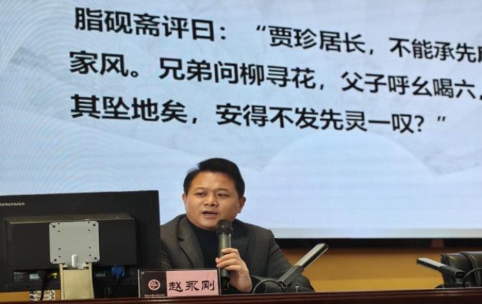 作为中国古典文学的巅峰之作,《红楼梦》不仅是描摹人情世态的文学瑰宝,更承载着儒家文化的深厚底蕴。讲座中,赵永刚教授以“伦理”为核心切口,将通透的文学解读与深刻的思想阐释相结合,带领师生穿透文本表象,探寻传统文化的精神内核。他指出,《红楼梦》以贾府兴衰为叙事主线,将儒家“家国同构”“三纲五常”的伦理思想深度融入故事肌理——“孝”是家族维系的核心准则,贾母的尊崇地位、王夫人对礼教的恪守,皆是孝道价值的鲜活实践;“悌”“礼”渗透于尊卑长幼、兄弟相处的日常,构筑起封建家族的秩序根基。而五伦关系的逐步崩坏,既暗藏着贾府由盛转衰的内在逻辑,更隐喻了封建末世儒家伦理的现实困境,让