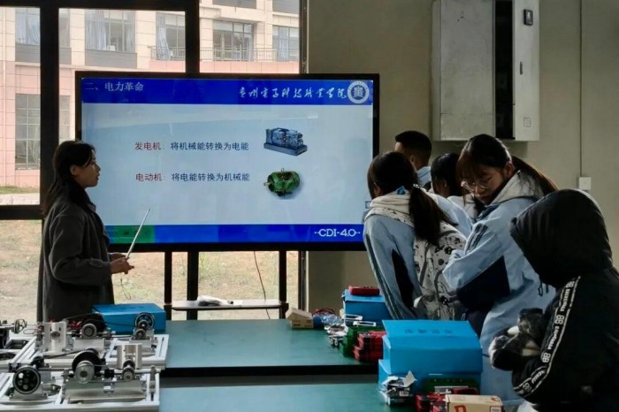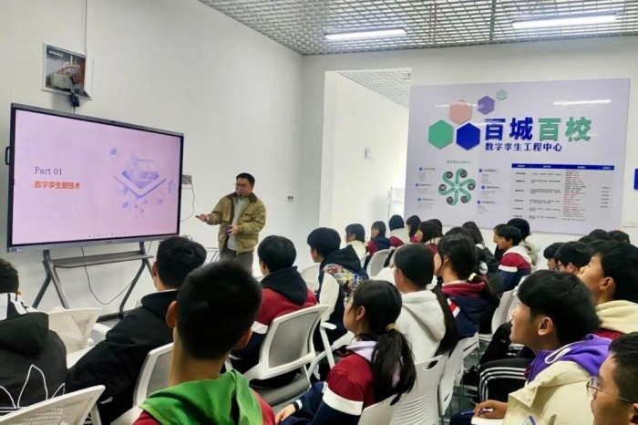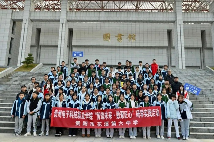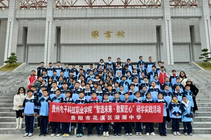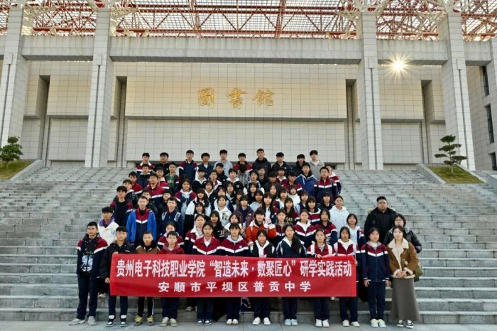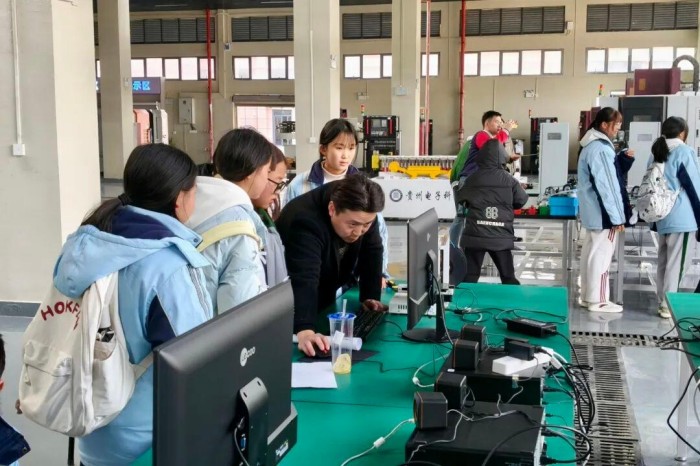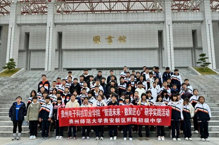 11月19日,依托贵阳贵安大数据产业产教联合体打造的十大前沿实训基地,学院开展中小学生数字素养研学实践活动。来自贵州师范大学贵安新区附属初级中学、贵安新区民族中学等5所学校的近500名学生,通过机器人编程、数字孪生搭建、智能物流分拣等沉浸式实践,在真实职业场景中感受数字科技魅力,推动职业教育与普通教育深度融通。