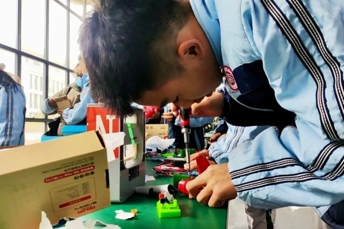 活动现场,工业自动化、ICT行业发展及职业初体验、智能循迹小车体验、主播讲非遗等十大前沿实训基地各有亮点,为学生提供真实场景下的职业体验。学生们亲手操作机器人编程、搭建数字孪生场景、参与智能物流分拣等任务,在实践中深化对职业岗位与技术发展的认知,推动职业教育与普通教育的有机融通。