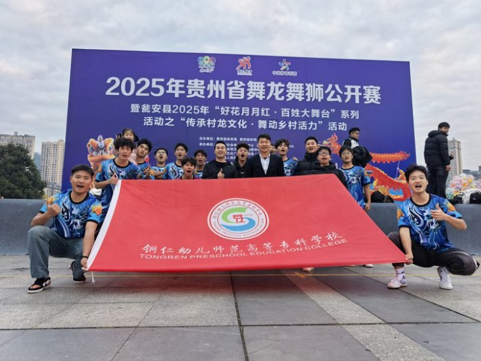 2025年贵州省舞龙舞狮公开赛于近日在黔南布依族苗族自治州举办,本次赛事由贵州省体育局、贵州省体育总会联合主办,吸引了来自全省多所本科院校、专科院校及社会组织的代表队同场竞技。铜仁幼儿师范高等专科学校首次选派男子舞龙队参与该项省级赛事,凭借整齐的节奏、流畅的动作和富有感染力的现场演绎,最终荣获二等奖1项、三等奖3项,展现出不俗的竞技水平和团队协作能力。