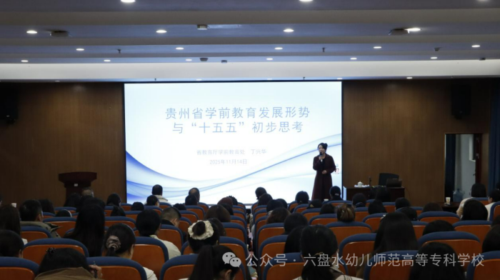 培训内容丰富,既有政策解读,又有实践经验分享,涵盖了专题讲座、现场观摩、互动研讨等多种形式,为全面提升参训学员的专业成长发挥了积极作用。培训特邀省教育厅学前教育处处长丁兴华作《贵州省学前教育发展形势与“十五五”初步思考》专题讲座。丁兴华处长的讲座内涵丰富,深入分析了当前我省学前教育发展面临的机遇与挑战,系统解读了相关政策导向,并对“十五五”时期学前教育发展的初步思路和重点任务进行了讲解。讲座理论联系实际,具有很强的针对性和指导性,为参训学员把握宏观政策、明晰发展方向、谋划未来工作提供了重要参考。