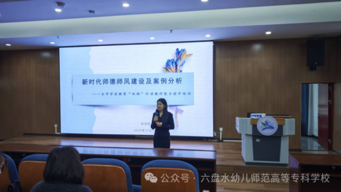 六盘水市教育招生考试院综合科科长、市教育局教师工作科负责人张宝密讲授《新时代教师师德师风建设及案例分析》专题