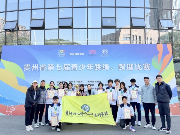 11月26日-11月30日,由贵州省体育局、贵州省教育厅联合举办的贵州省第七届青少年跳绳、踢毽比赛在贵州师范学院圆满落幕。比赛期间,贵阳幼儿师范高等专科学校运动健儿们捷报频传,凭借扎实的专业技能和出色的表现经过激烈角逐,斩获多项殊荣10金、4银、3铜、第四第六各1名,充分展现贵阳幼儿师范高等专科学校学子勇攀高峰,积极向上的精神风貌,彰显了贵阳幼儿师范高等专科学校长期坚持“立德树人”的教育理念,推动了学校体育高质量发展。